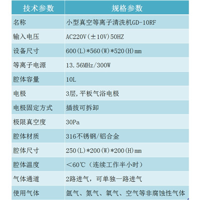 10L射頻真空等離子清洗機(jī)_實(shí)驗(yàn)室等離子設(shè)備_科研機(jī)構(gòu)等離子表面處理機(jī)GD-10RF 技術(shù)參數(shù)