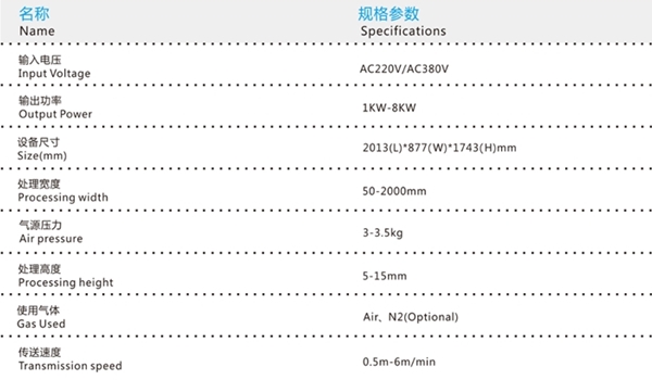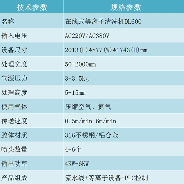 DL600在線(xiàn)式等離子清洗機(jī) 寬幅等離子表面處理 技術(shù)參數(shù):